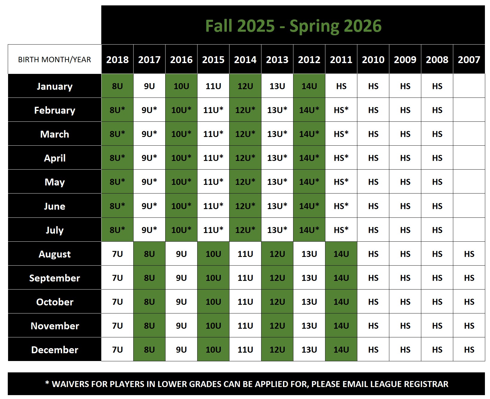 *Waiver is required to show that the player is or will be in the 8th grade during the current soccer year.